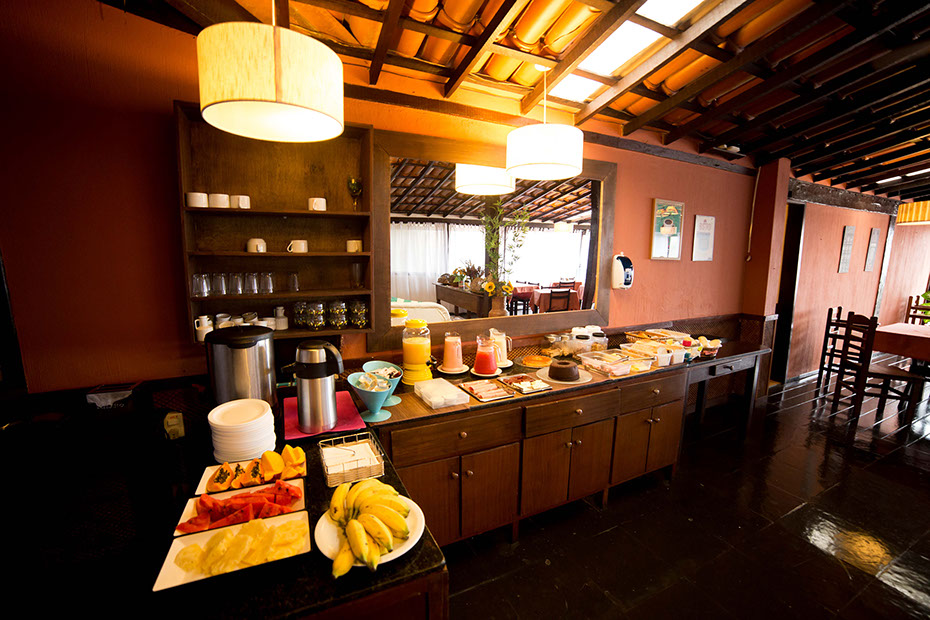 Tortas variadas dulces y saladas, cereales,frutas tropicales, diferentes tipos de panes, quesos y friambres, tés y el famoso café brasilero, componen nuestro completo desayuno que ayudará a reponer las energías para inicar su dia.
